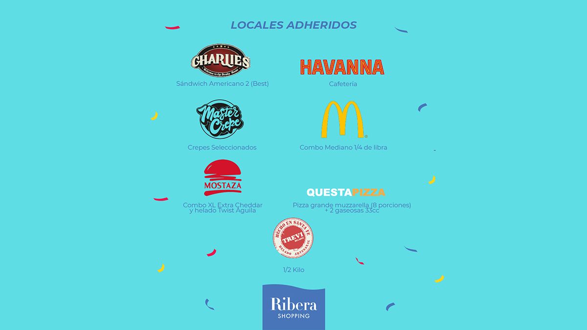 Ribera Shopping te recibe con óptimas y seguras condiciones de salubridad y se convierte –una vez más- en el mejor lugar para realizar tus compras. En sus horarios de 12 a 20hs para locales comerciales y de 12 a 23hs para locales gastronómicos, este fin de semana del Día del Niño Ribera Shopping renueva su propuesta, pensando en vos, en lo que te gusta; con una promo imperdible: