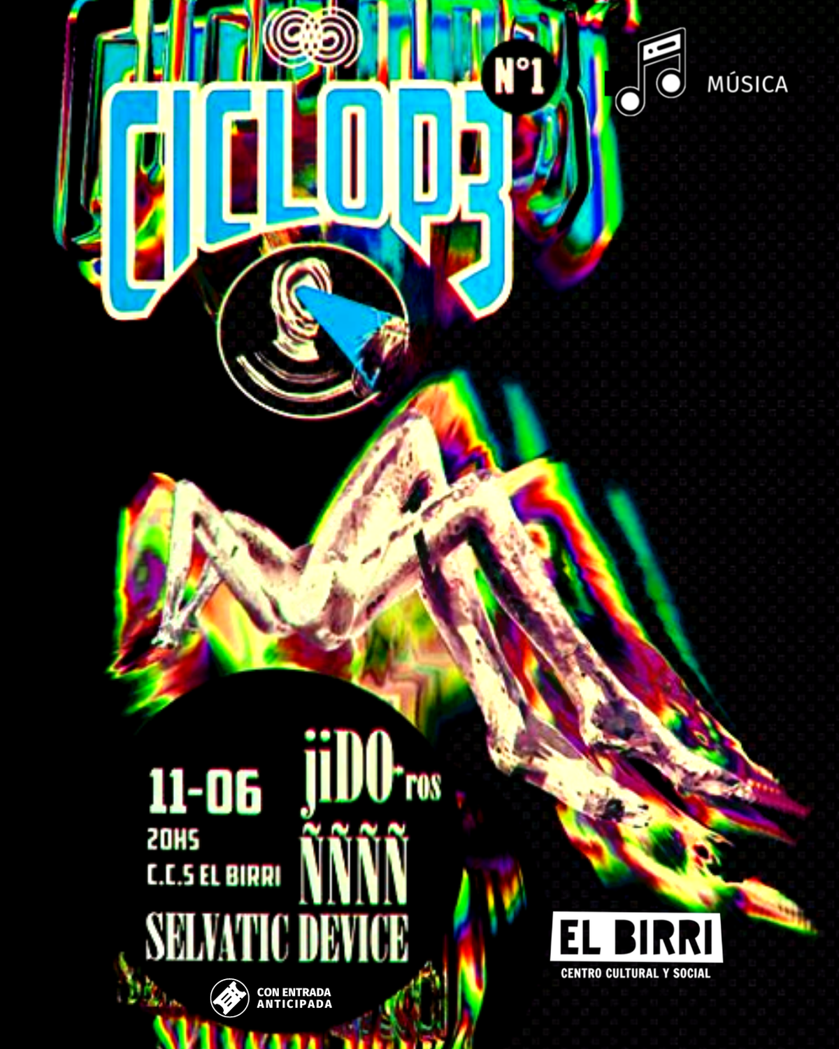 El sábado 11 de junio se viene el regreso de los eventos musicales a El Birri. El centro cultural recibe a Repelente Discos con “CICLOP3 N°1”, un triple combo explosivo imperdible compuesto por: