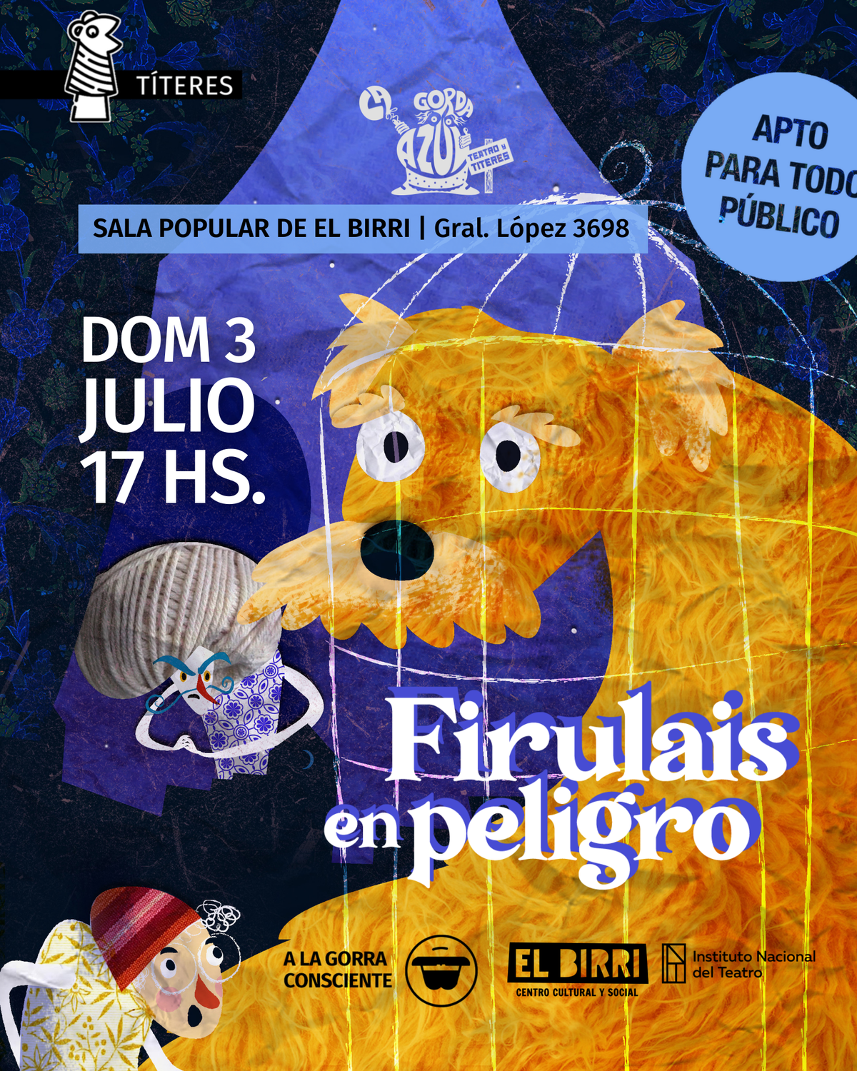 El domingo 3 de julio llega “Firulais en peligro” de la Gorda Azul. El espectáculo de teatro y títeres es apto para todo público y comenzará a las 17. La Gorda Azul dentro de un mundo de chatarras contará una historia fantástica: una mascota llamada Firulais es secuestrada por un sultán malvado y despótico. Su mejor amiga una campesina anciana irá a rescatarlo, para ello deberá correr un periplo de aventuras, personajes exóticos y paisajes de material reciclado. Tan solo con un cuenco, podrá ir sorteando cada uno de los obstáculos que se le presentan y al final gracias a su generosidad será recompensada con un tesoro que le permitirá pagar el rescate de Firulais. El sultán insaciable y ambicioso intentará también llenarse de tesoros pero al no entender el verdadero sentido de la recompensa recibirá su mojado merecido.