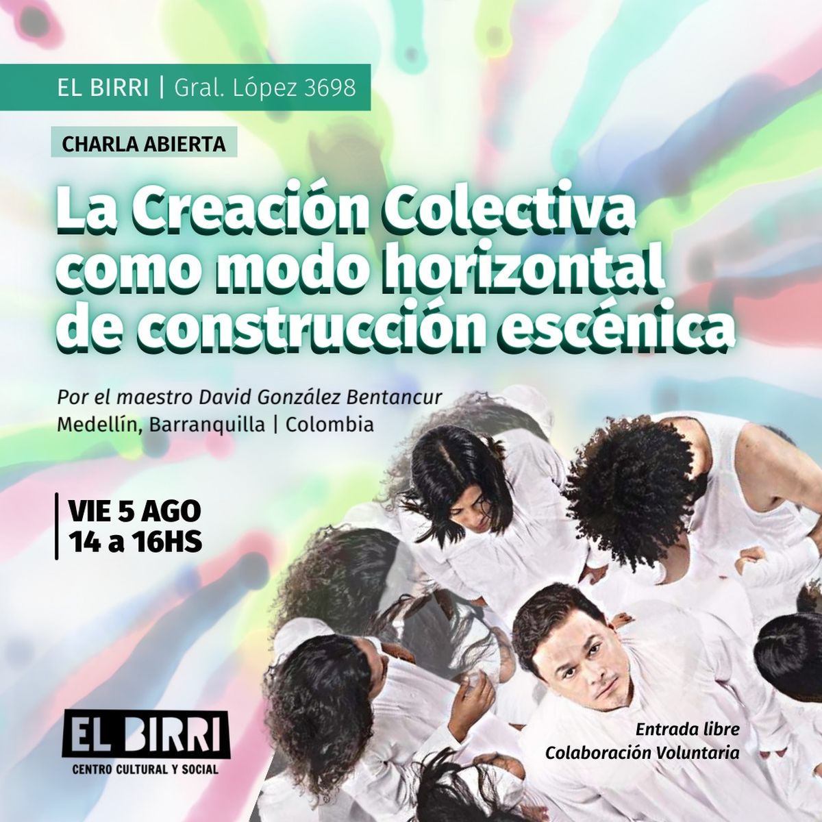 El viernes 5 de agosto comienza la programación cultural del mes en la Sala Popular de Teatro con una charla abierta del maestro David González Bentancur (Medellín/Barranquilla. Colombia), llamada “La Creación Colectiva como modo horizontal de construcción escénica”. Comenzará a las 14 en la Sala de Escuela de Carnaval de El Birri y se extenderá hasta las 16. La entrada es libre con colaboración voluntaria, no es necesaria la inscripción previa, pero se requiere puntualidad en el inicio.