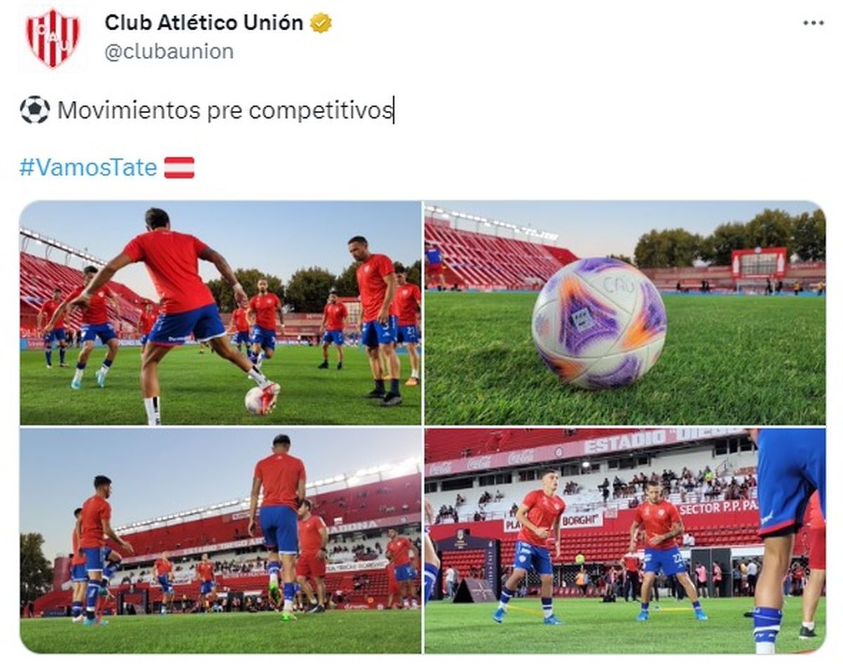 Los jugadores de Unión realizan los movimientos precompetitivos para asumir el compromiso ante el Bicho.