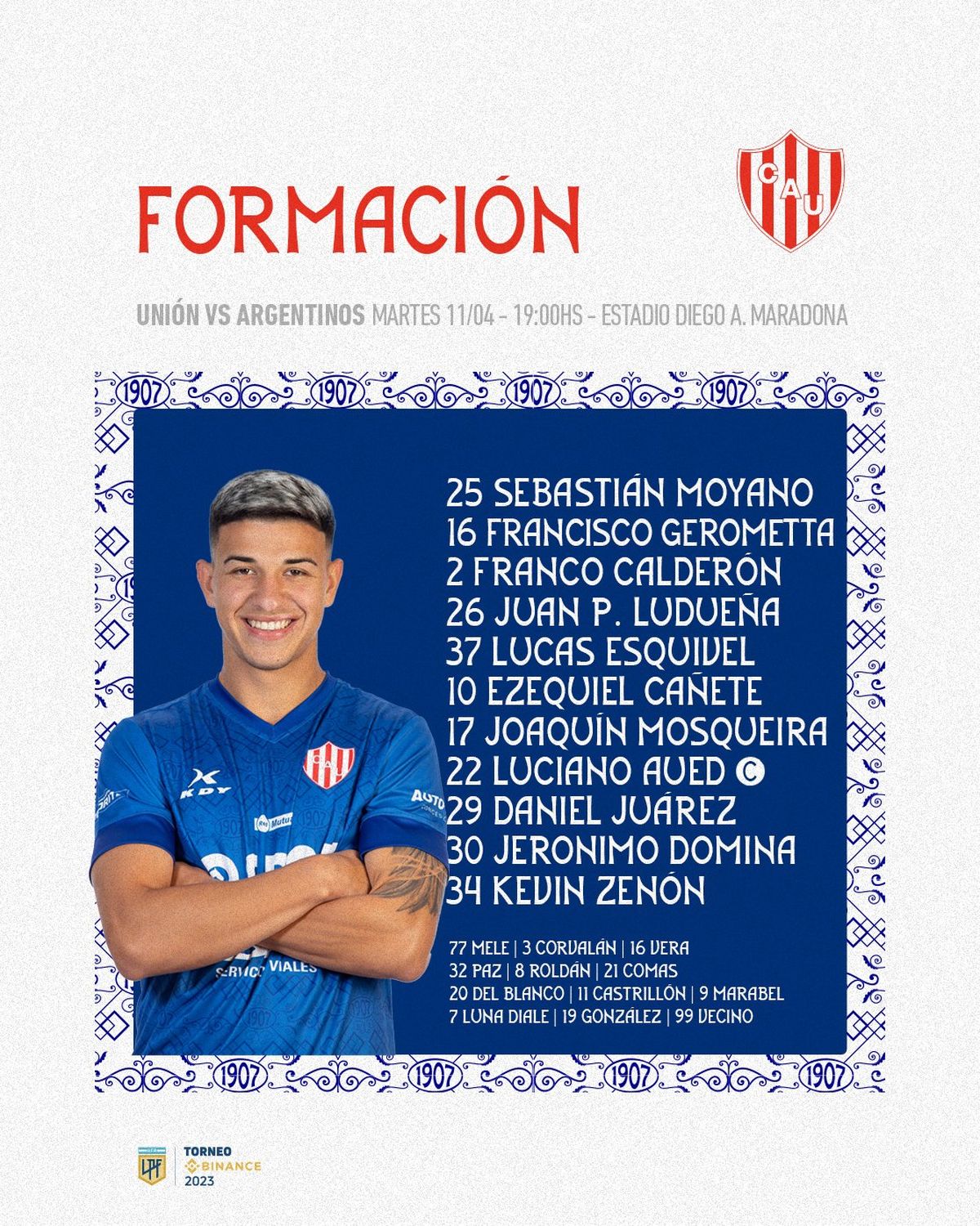 Para este duelo, Tato Mosset presentará un once muy distinto al que viene presentando Unión en los últimos partidos. Para enfrentar al Bicho, Tato pondrá como titulares a Sebastián Moyano, Lucas Esquivel, Francisco Gerometta, Kevin Zenón y Jerónimo Dómina.
