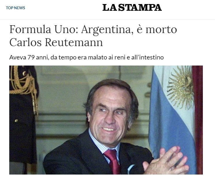 El diario La Stampa escribió: "El mundo de la Fórmula 1 está de luto: ha fallecido el gran piloto argentino Carlos Reutemann, que entre el '72 y el '82 había vinculado su nombre a Brabham, Ferrari, Lotus y Williams, ha fallecido. Tenía 79 años".