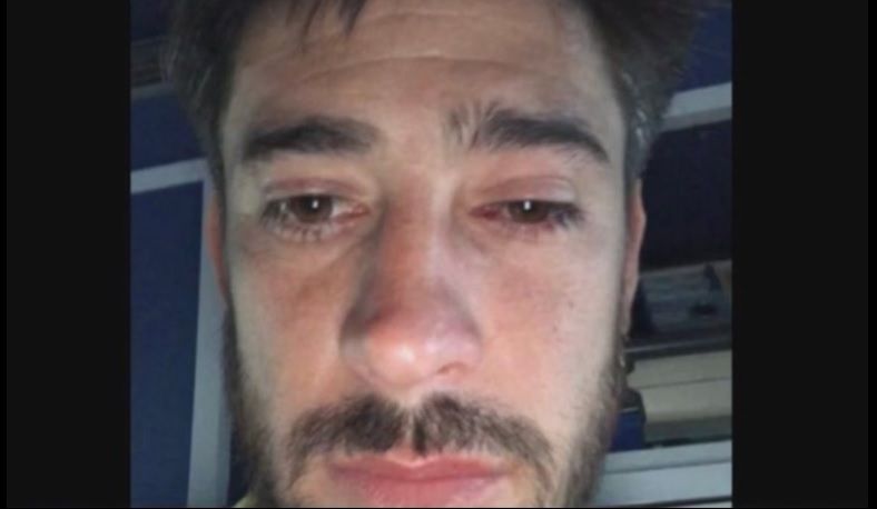 Así tiene el ojo izquierdo el capitán de Boca, que fue trasladado en ambulancia al Sanatorio Otamendi.