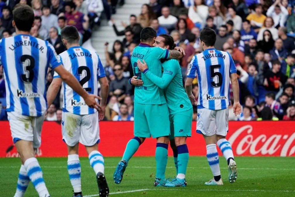 El conjunto vasco tomó ventaja en el tanteador con un penal de Mikel Oyarzabal a los doce minutos pero Barcelona revirtió parcialmente el resultado con goles del francés Antoine Griezmann -ex jugador de la Real Sociedad- y el uruguayo Luis Suárez, asistido por Lionel Messi, a los 38 minutos de la parte inicial y cuatro de la complementaria.
