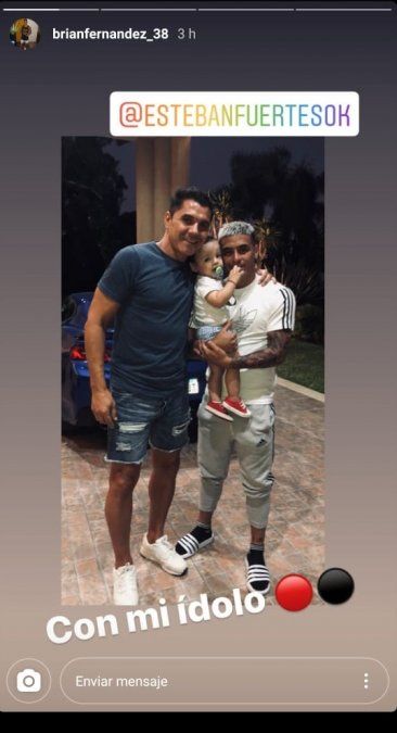 Su evolución viene siendo muy positiva y tal es el caso que volvió a compartir historias y fotos en sus redes sociales. De esta manera, Brian Fernández se sacó una fotografía con el Bichi Fuertes y puso un mensaje demostrando su fanatismo con el goleador histórico del Club: "Con mi ídolo".