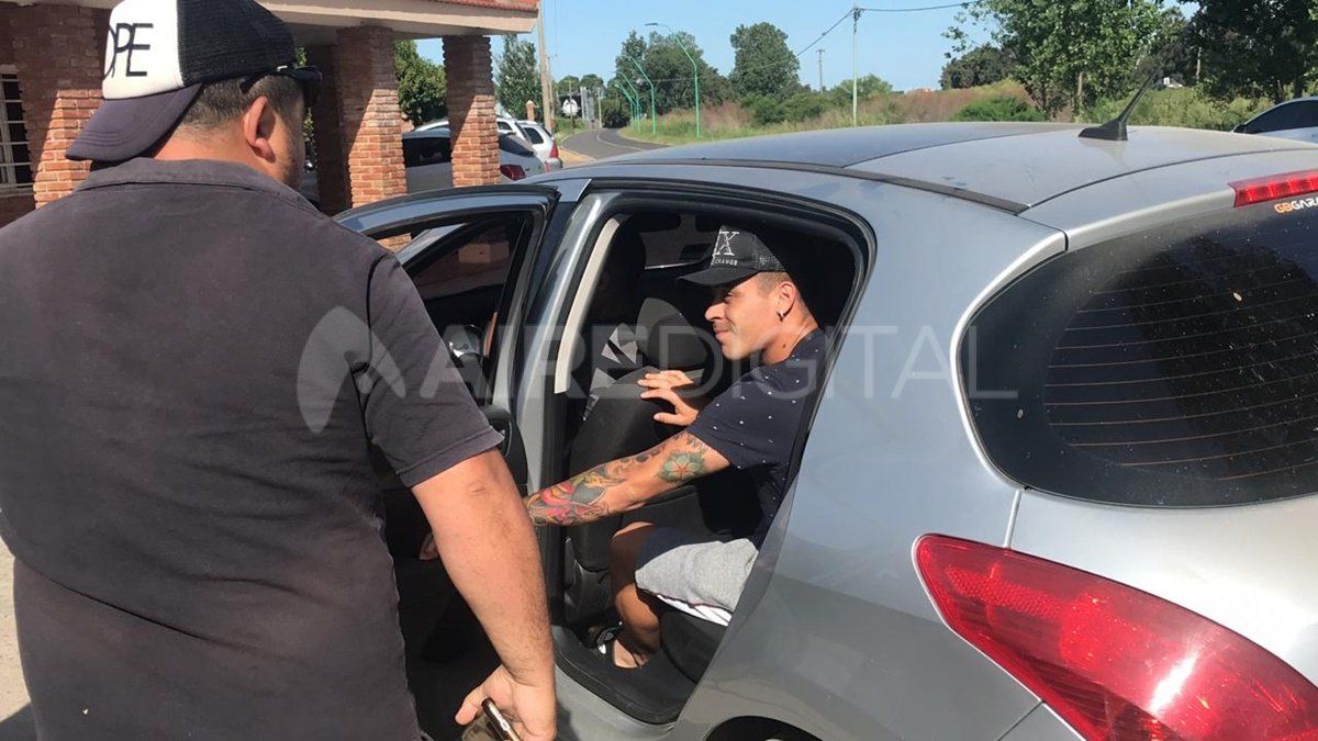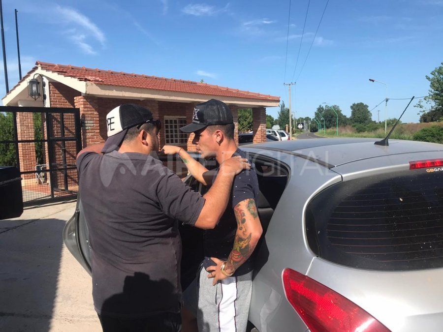 El futbolista llegó acompañado por un amigo y su prima, y se bajó a charlar con una persona que lo estaba esperando para darle su apoyo. Brian, descendió del auto para agradecerle por las buenas energías de este hincha rojinegro.