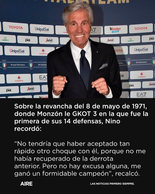 Si este combate se hubiera realizado –lo que nunca ocurrió–, sería el cuarto entre ambos y, la serie, quedó 2-1 para Nino ante el oriundo de Islas Vírgenes, incluido el choque del 4 de marzo de 1968, cuando inauguraron el nuevo Madison Square Garden neoyorquino. "Obvio, optaron por el que les pareció menos riesgoso para su boxeador", recordó Lectoure. El viernes 3 de julio, a las 15, se anunció en conferencia de prensa el choque con los títulos en juego –el que aún no tenía fecha pero sí lugar, porque sería en Roma– y, al día siguiente, Amaduzzi y Sabbatini regresaron a la Ciudad Eterna.