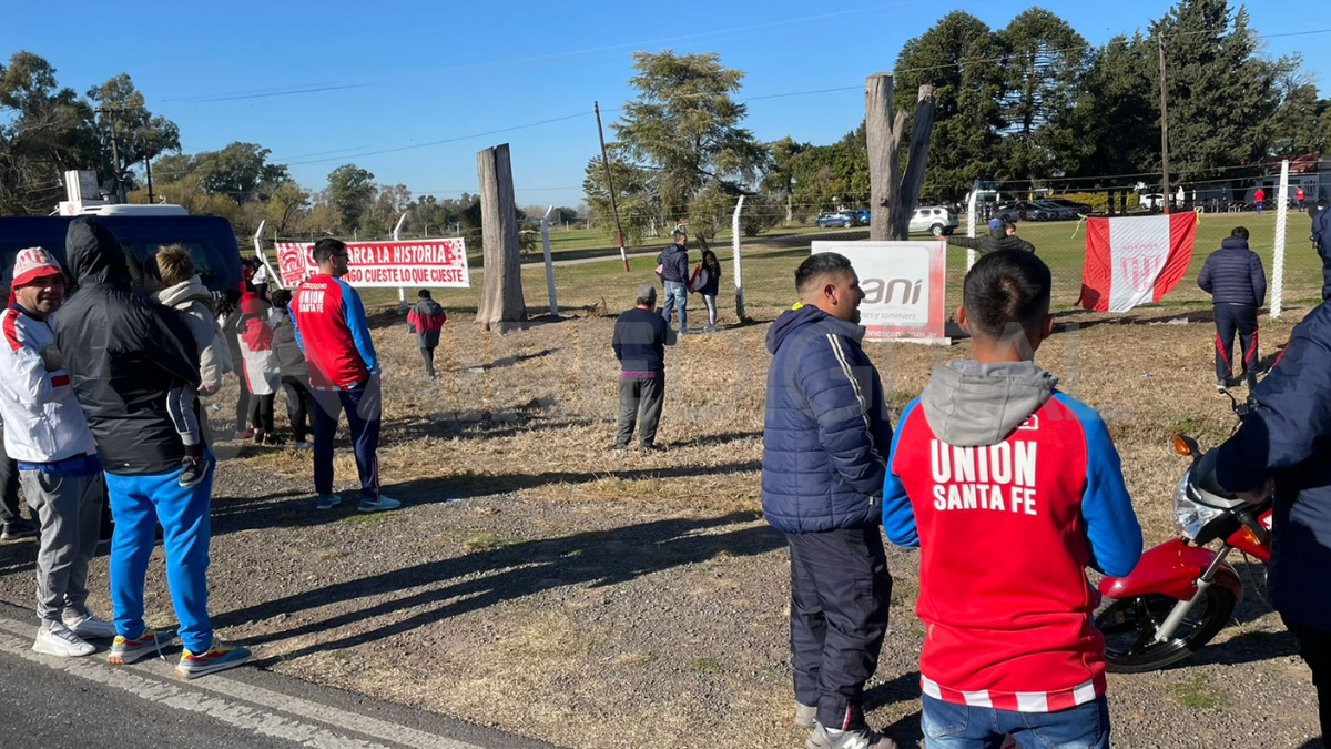 Mientras los "sabaleros" se iban agolpando en la puerta del club, los "tatengues" se acercaron hasta el predio de Casasol para acompañar al plantel de Unión en el camino hasta el estadio de Colón.