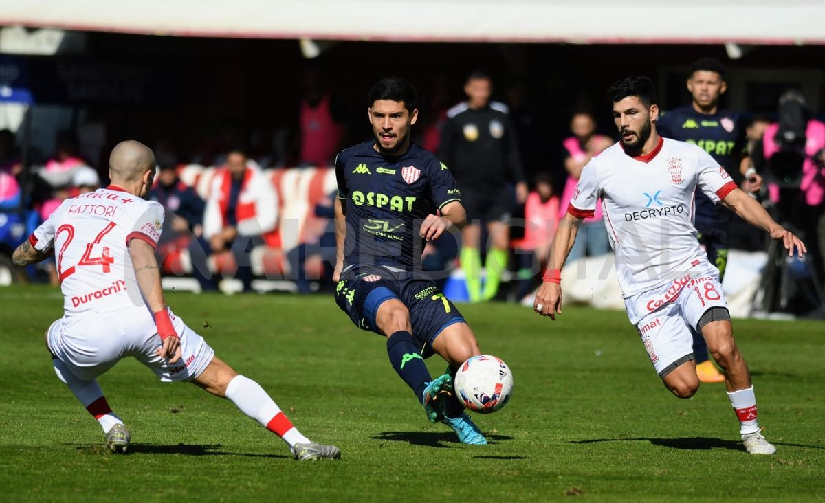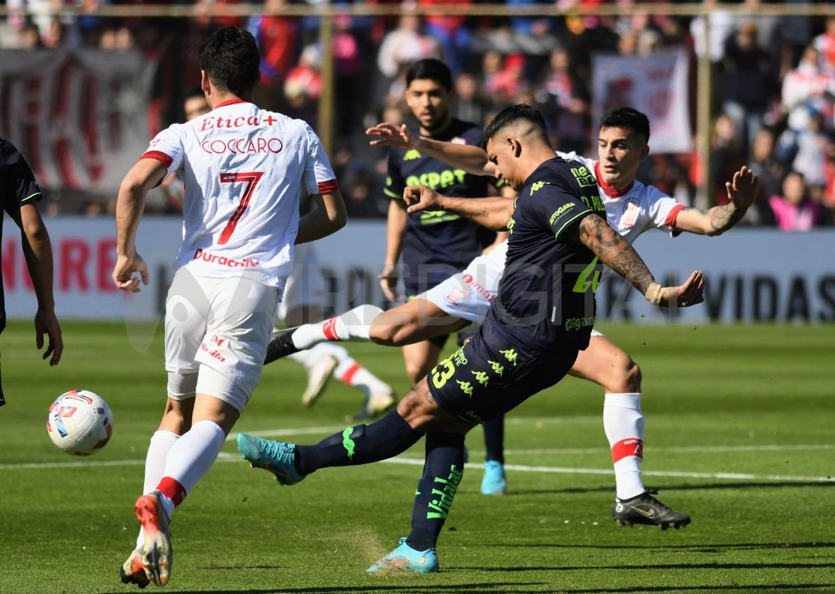 No fue un partido sencillo para Unión. Huracán hacía jugar mano a mano a sus delanteros con la última línea del tatengue, abría el juego con sus laterales y se mantenía cerca del área de Santiago Mele constantemente. Con centros por las bandas y juego directo, el Globo no dejaba salir con tranquilidad a los de Gustavo Munúa que se veían obligados a lanzar pelotazos desde el fondo para ganar un respiro.