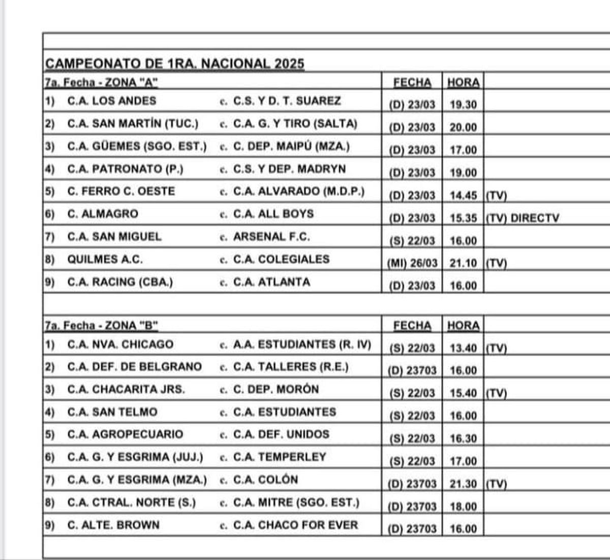 Desde la Asociación del Fútbol Argentino dieron a conocer este jueves la programación de la fecha N.° 7 de la Primera Nacional. Colón visitará a Gimnasia y Esgrima de Mendoza el domingo 23 de marzo a las 21:30.