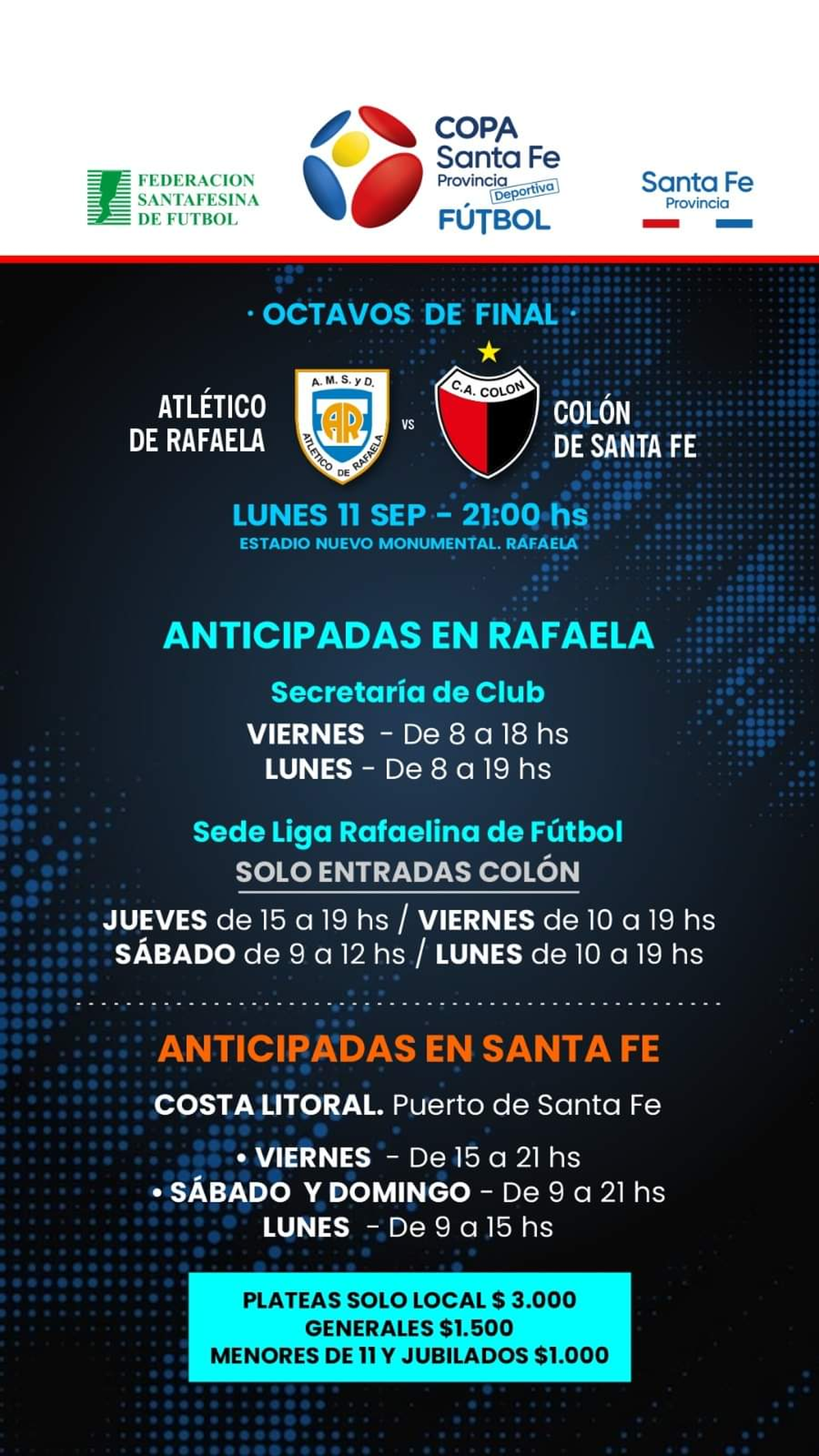 La Copa Santa Fe 2023 entro en la etapa de los Octavos de final en la fase donde debutan los equipos de la Primera División. Este lunes será el turno de Colón que visitará en la Perla del Oeste a Atlético Rafaela. Están a la venta las entradas para los hinchas Sabaleros que quieran ir al partido.