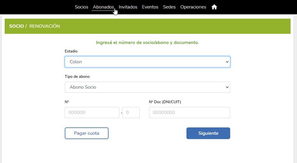 - Cuota al día y abono pago en caso de ser necesario (platea este, platea oeste, palco, etc).