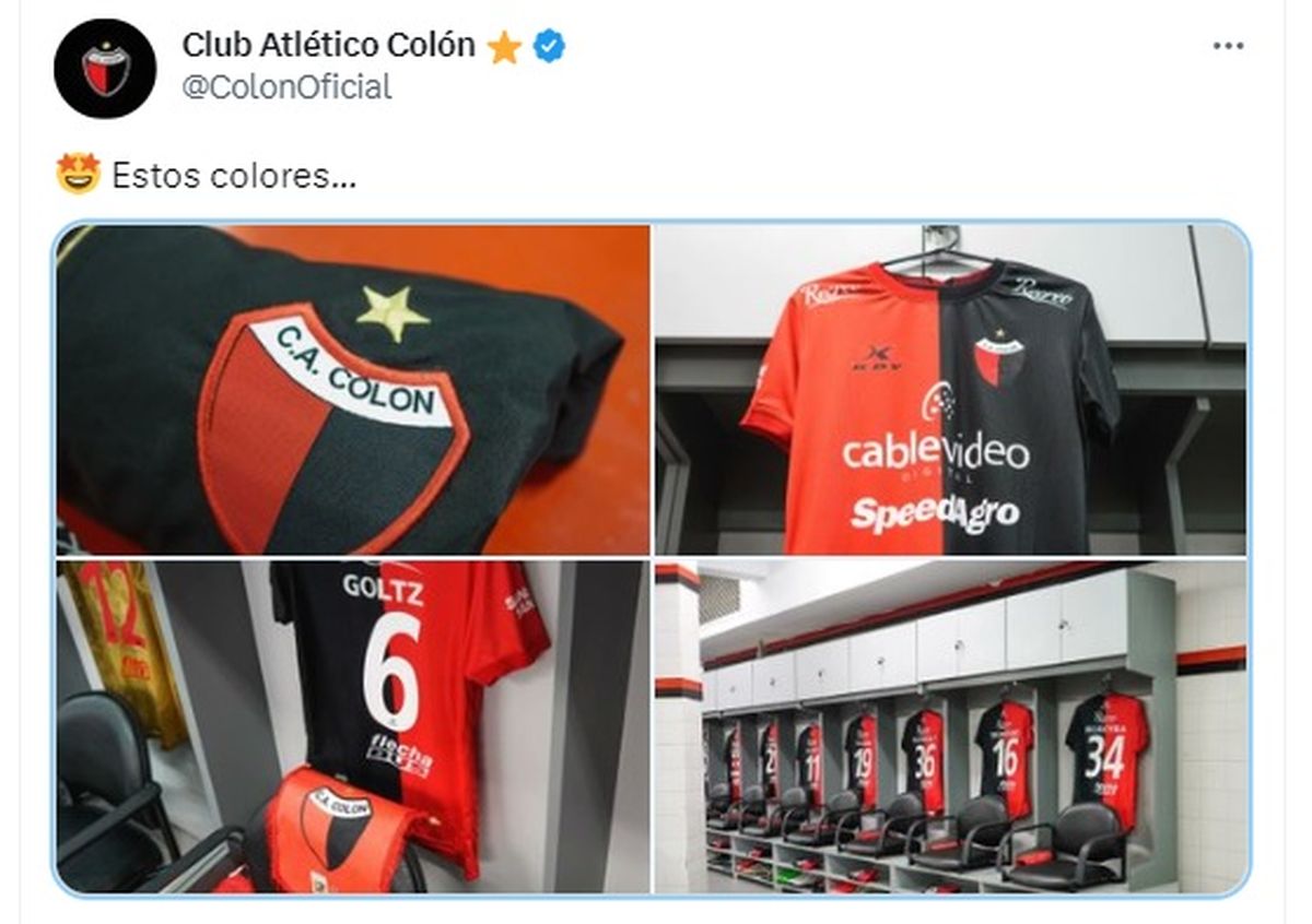 El Sabalero publicó en redes sociales que jugará ante Talleres con la equipo titular, con los tradicionales colores rojo y negro.
