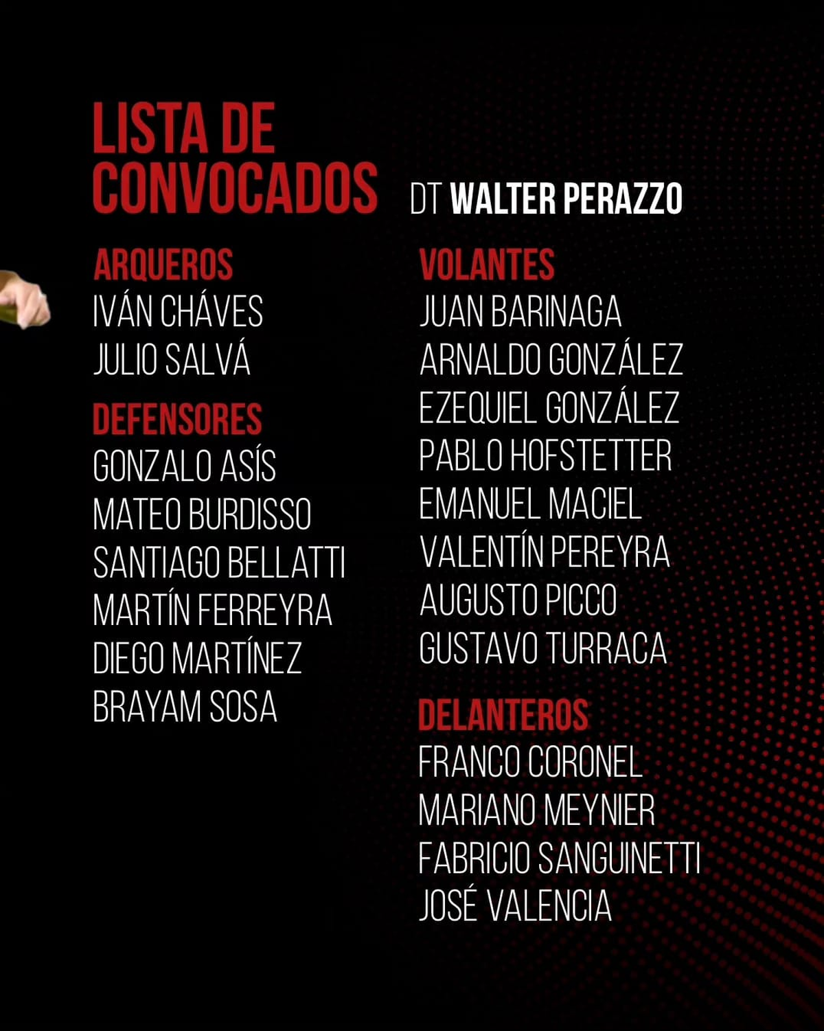 A 24 horas del partido, los directores técnicos Iván Delfino y Walter Perazzo dieron a conocer la lista de jugadores convocados para el encuentro de la Fecha 4 que se llevará a cabo en la ciudad de Santa Fe.
