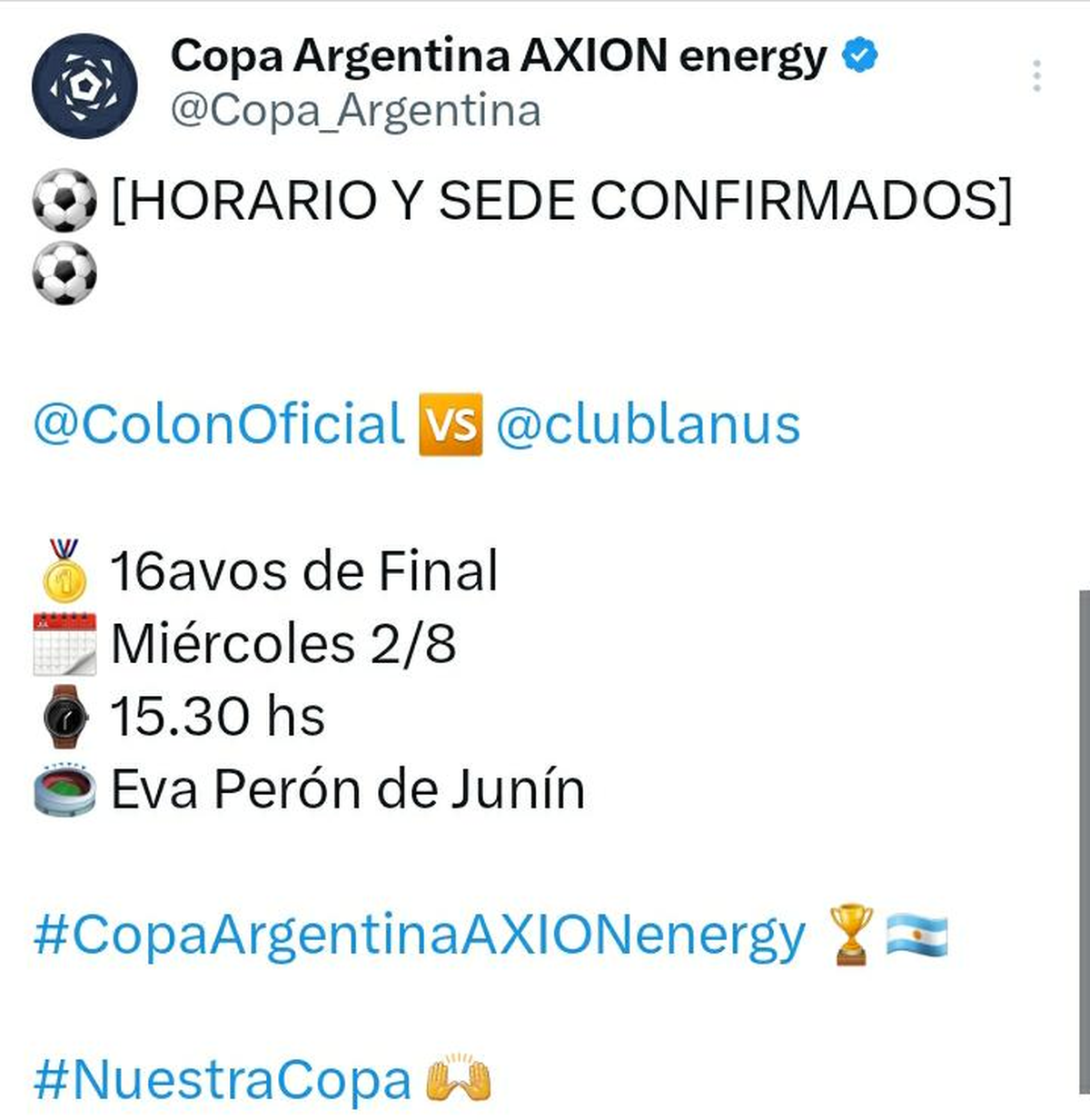 Después de varias semanas de especulación y puja en los escritorios, la organización de Copa Argentina confirmó este miércoles cuándo jugarán Colón y Lanús, por los 16avos de final. Además anticipó a sede y el horario del partido.