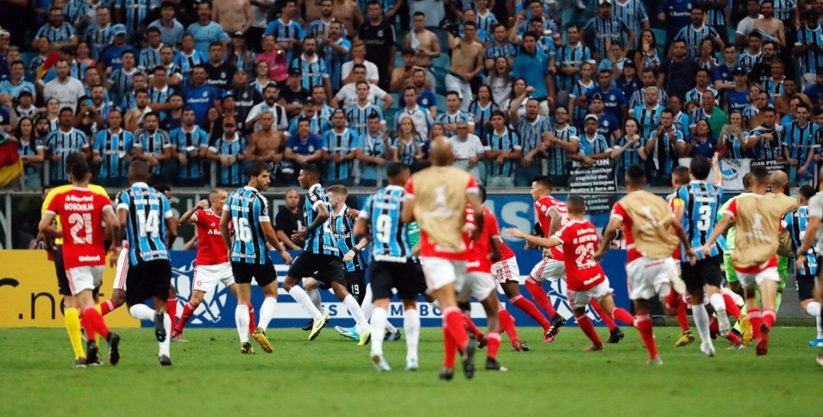 El 'Gre-Nal' -como se denomina al mayor clásico de Brasil- era el 424 entre ambos clubes vecinos, que se jugó con 50 mil espectadores, en el estadio Gremio Arena, finalizado en empate sin goles y que mostró más acciones vehementes que de juego.