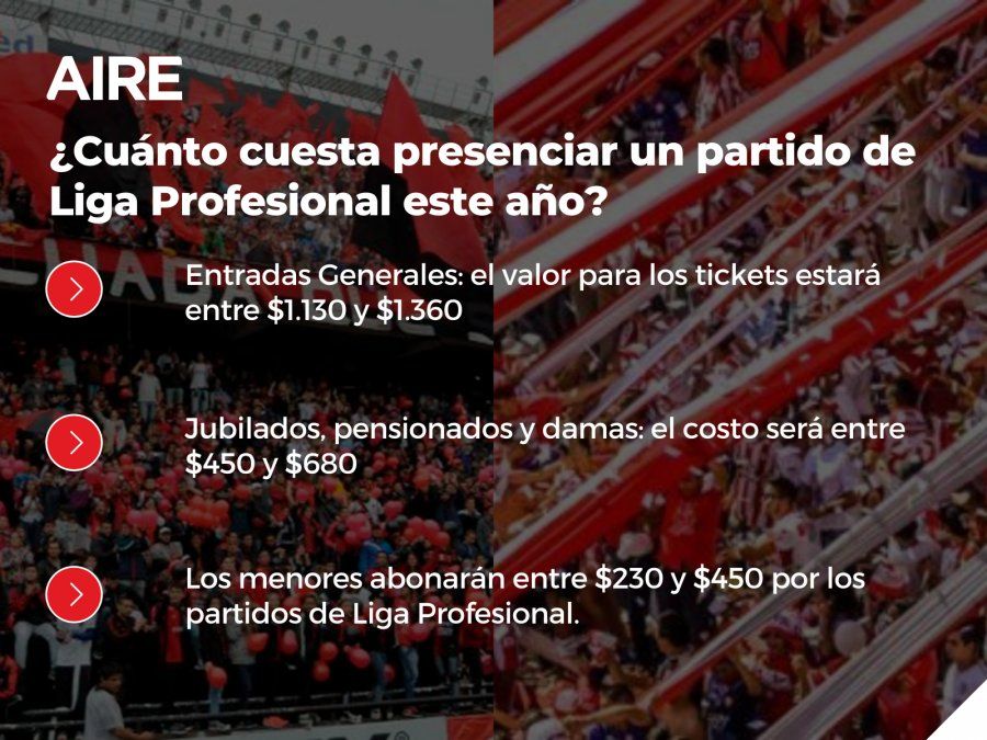 La Asociación del Fútbol Argentino (AFA) anunció que las entradas para todas las categorías del fútbol argentino, incluido el femenino y futsal, sufrirán un aumento del 13 por ciento, de cara a la nueva temporada 2022.