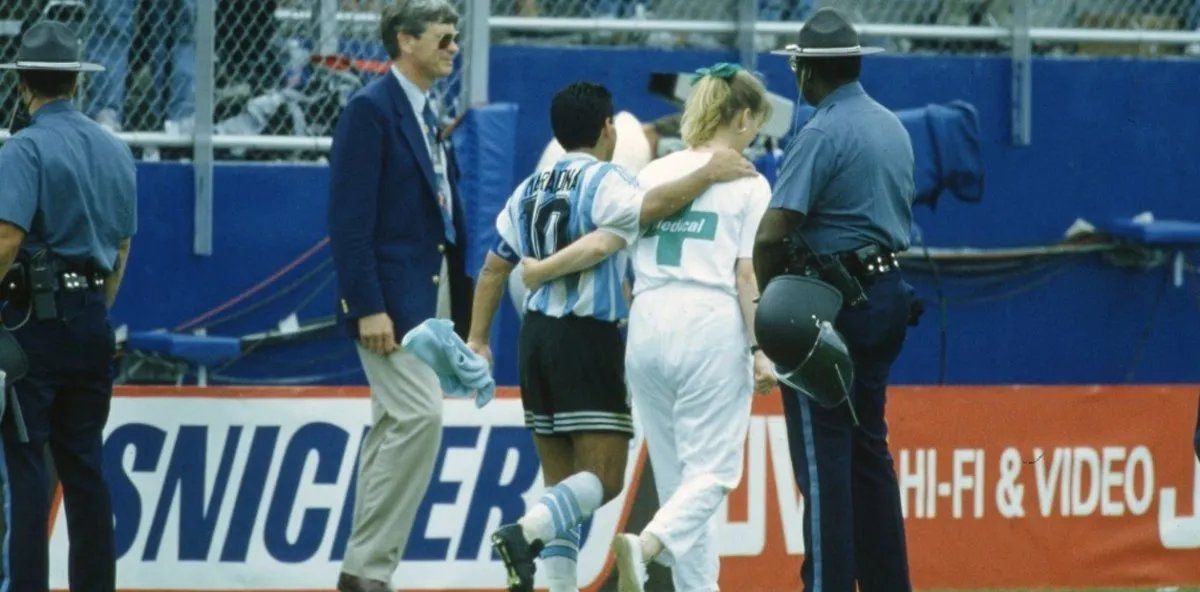 “Cuando vi que la rubia se lo llevaba, pensé que algo raro pasaba”, comentó Alfio Basile. Aquel 26 de junio de 1994 en donde Argentina venció a Nigeria 2 a 1 por la segunda fecha del Mundial de Estados Unidos 1994, sería el último partido de Diego Armando Maradona con la camiseta celeste y blanca. El sueño de la tercera copa del mundo para nuestro país, se vio truncado de manera fulminante debido a un doping positivo por efedrina, del cual aún llueven las sospechas debido a la excesiva sanción que sufrió el futbolista argentino.