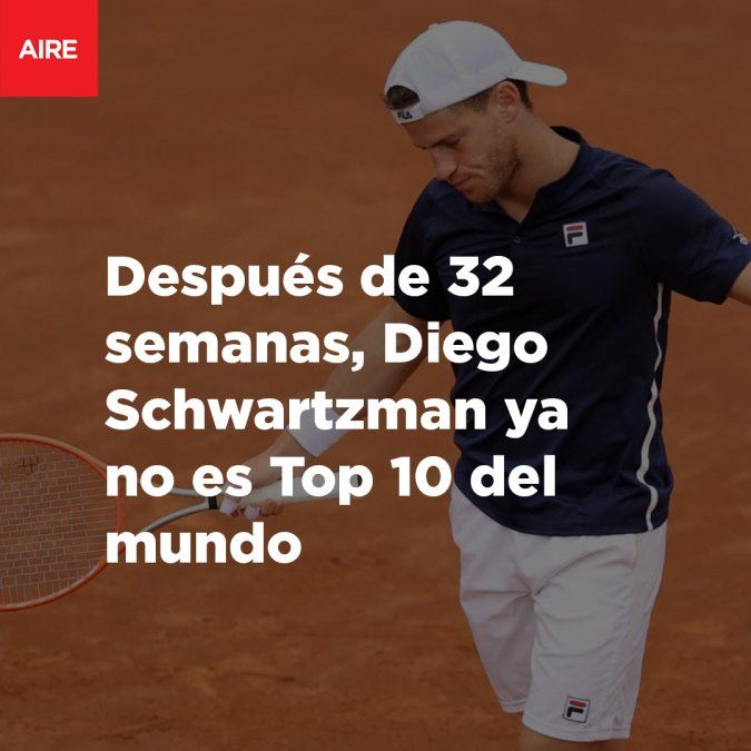 Diego Schwartzman abandonó hoy el "top ten" del ranking mundial de tenis después de habitarlo durante 32 semanas consecutivas, un retroceso que se produjo por haber resignado puntos durante su reciente participación en Roland Garros.