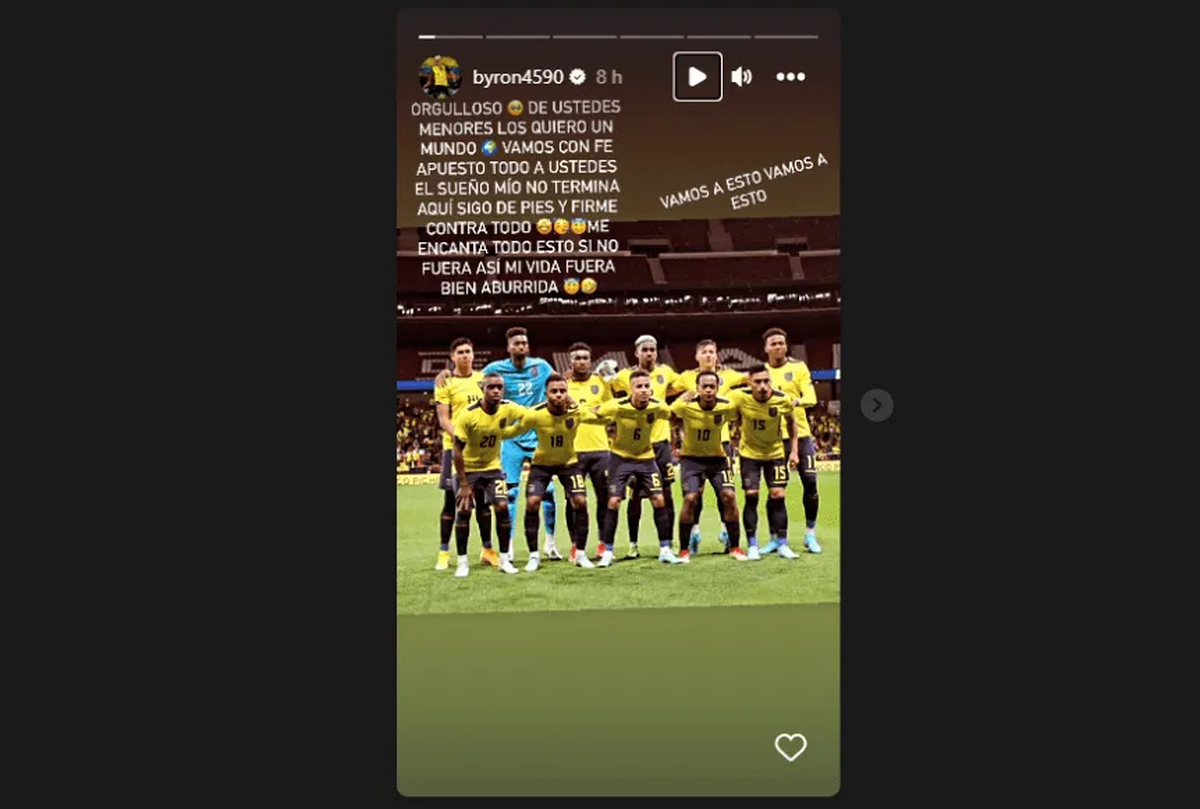 "Orgulloso de ustedes, los quiero un mundo. Vamos con fe que apuesto todo a ustedes. El sueño mío no termina, porque aquí sigo de pie y firme contra todo. Me encanta esto, porque si no fuera así, mi vida sería bien aburrida", expresó Castillo, que juega en León, de México y el pasado jueves 10 cumplió 24 años.
