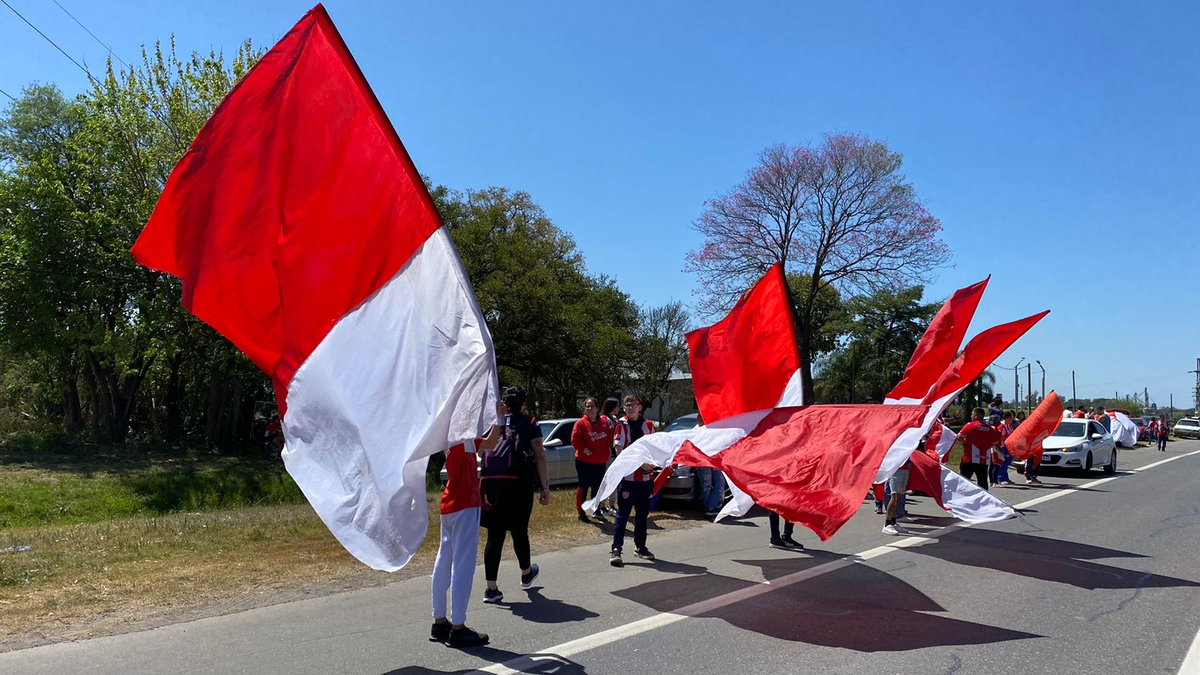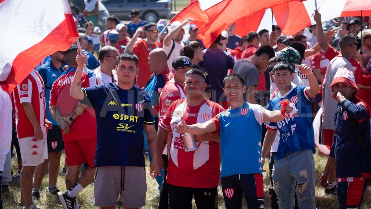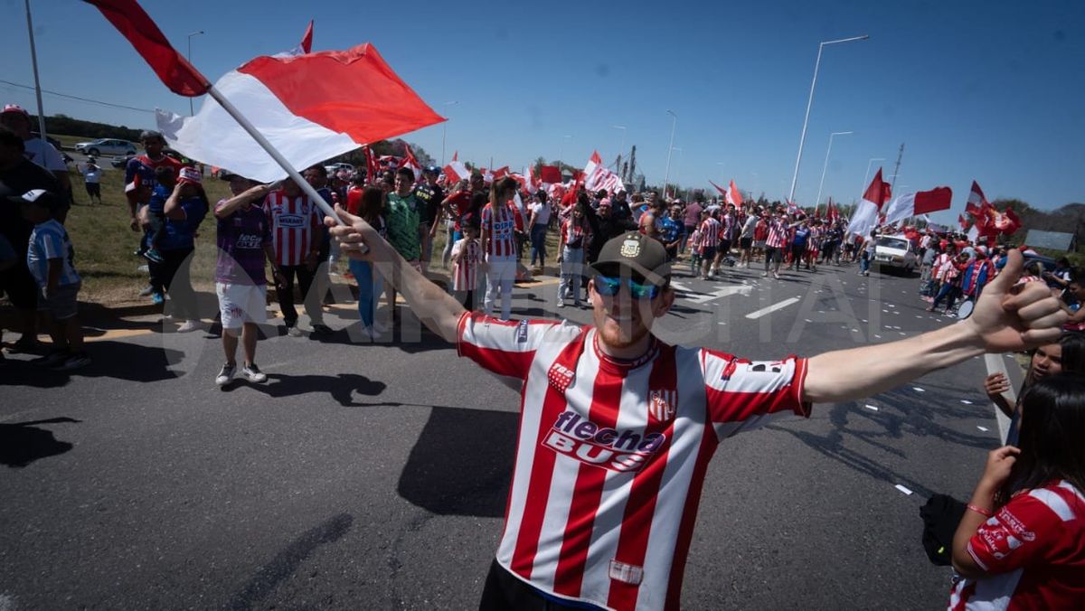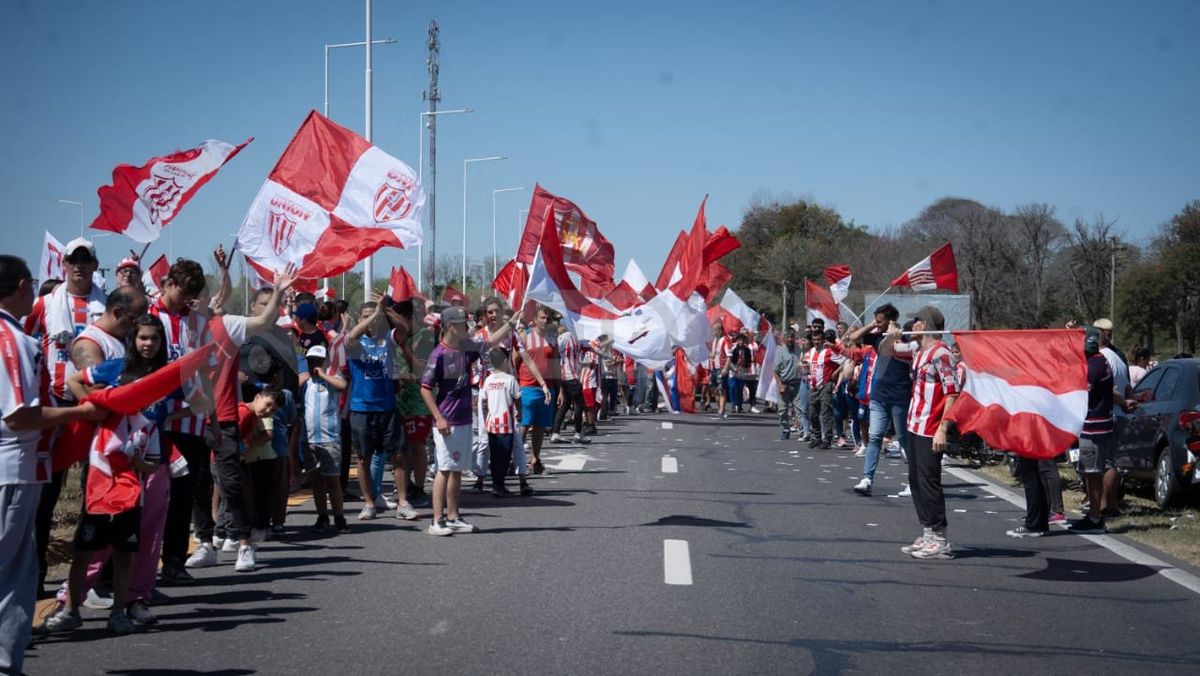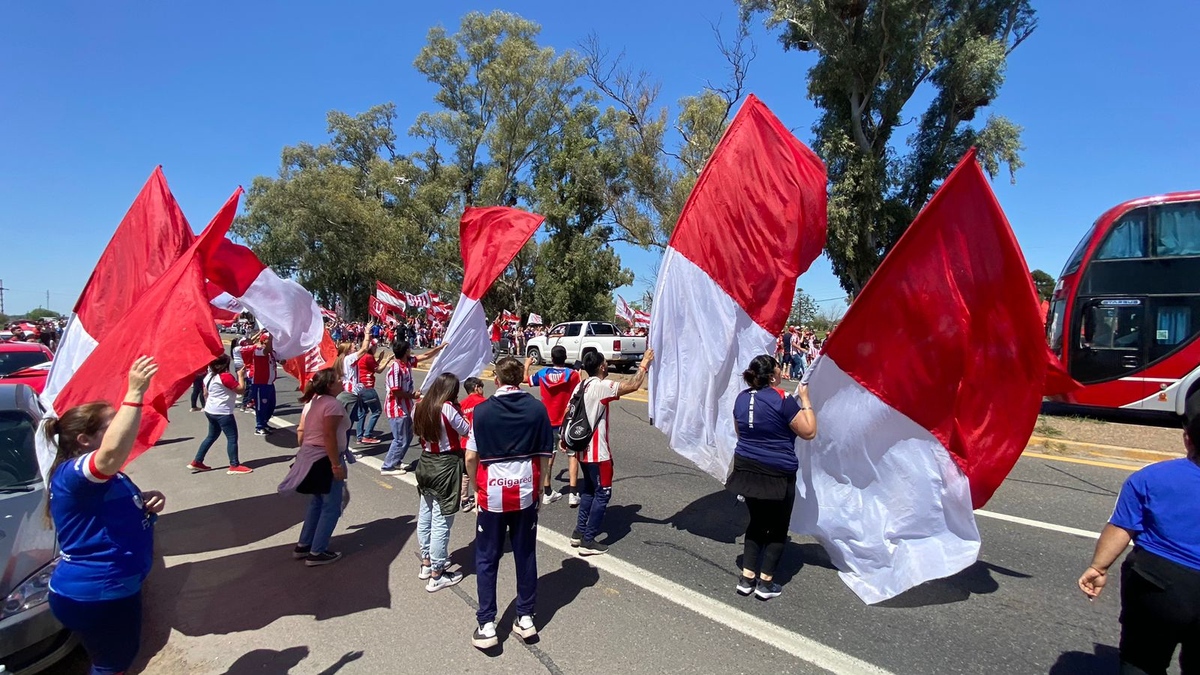 Con banderas, bombos y camisetas rojas y blancas, los hinchas de Unión le pusieron calor y color a la previa de la salida del colectivo con los jugadores de Tatengues que los llevaba hasta el estadio Brigadier López de Colón.