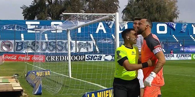 “Vos, si sos tan guapo, vení a buscarme después del partido”, fue lo que le dijo el arquero a un integrante del departamento de prensa del equipo mendocino cuando el primer tiempo terminaba. Luego de eso se acercó de manera violenta hasta la parte de atrás del arco y fue detenido por compañeros y por los árbitros del partido para que el insulto no pasara a una instancia física.