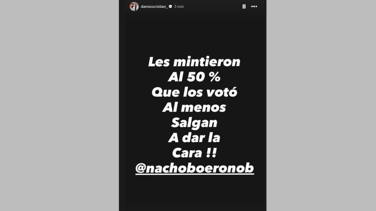 El ex dirigente utilzó sus redes sociales para emitir un contundente mensaje apuntado al actual presidente. "Les mintieron al 50% que los votó, al menos salgan a dar la cara", comenzí el escritó que terminó mencionando a Nacho Boero.