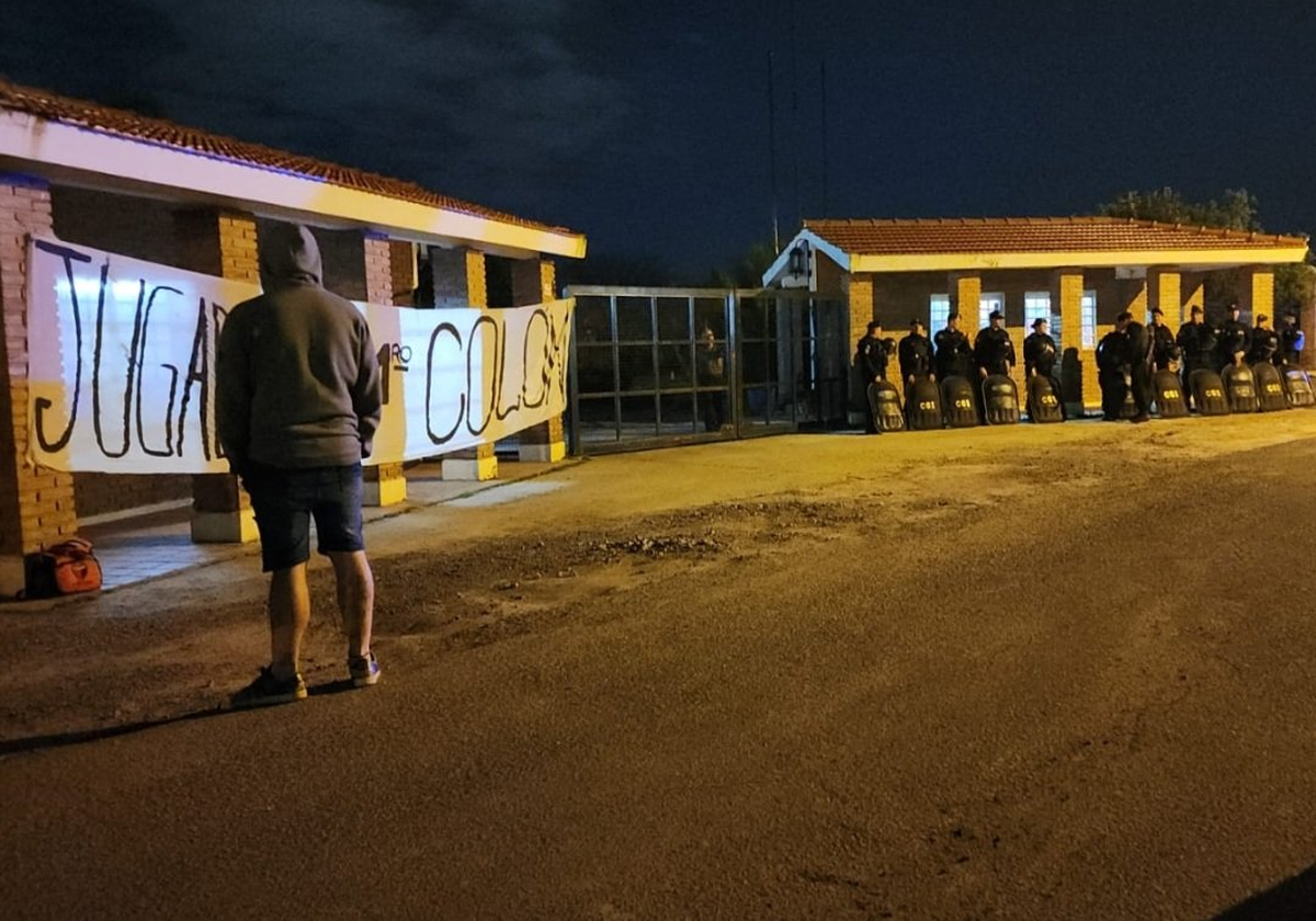Mientras unos fanáticos del Sabalero repudiaban al equipo en Sarandí, otro grupo de hinchas de Colón llegaron hasta el predio de la capital provincial, lugar de entrenamiento, para dejar una bandera con un mensaje dirigido al plantel: "Jugadores 1ero Colón".