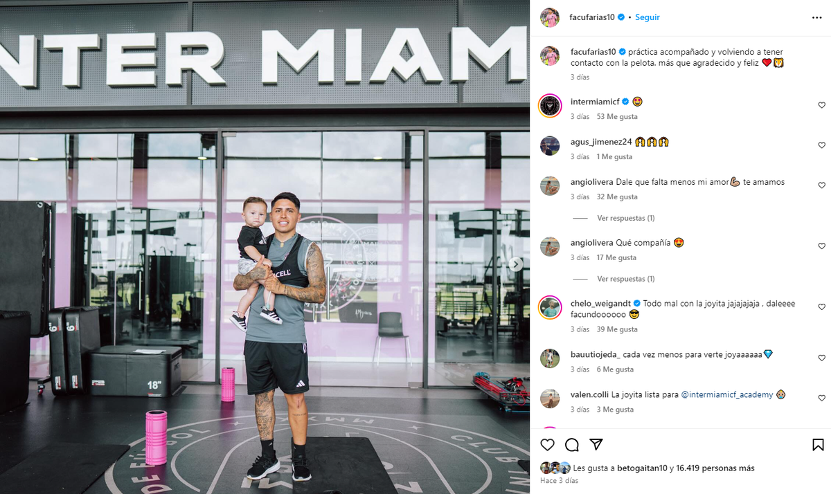 El santafesino y ex Colón Facundo Farías está más cerca de regresar a las canchas tras la grave lesión que sufrió a principios de 2024 cuando se rompió los ligamentos de una de sus rodillas. El delantero usó sus redes sociales para hacer un posteo que tuvo una importante reacción de Inter Miami.