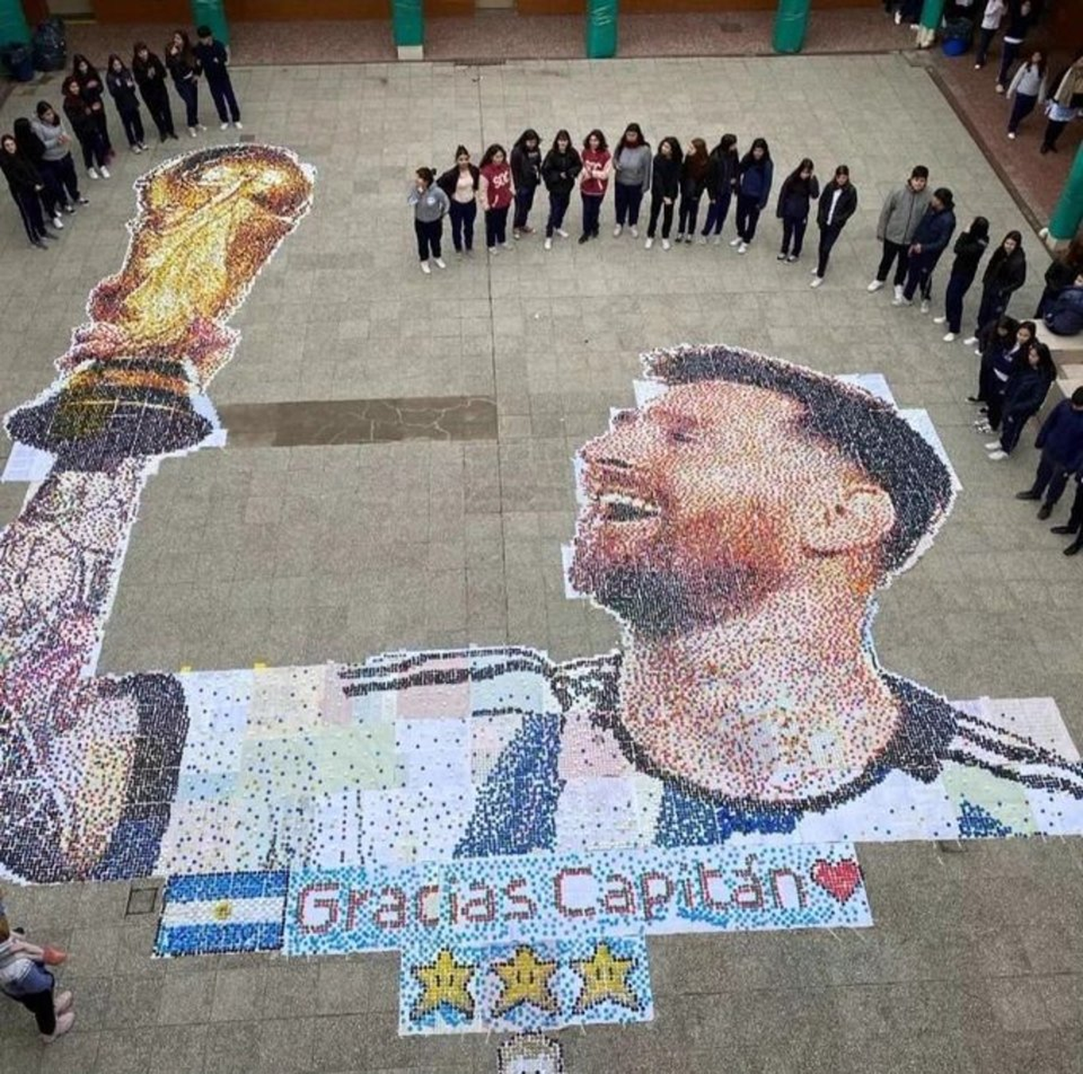 Junto al artista Sebastián Ramírez, los estudiantes del colegio secundario organizaron, recolectaron y armaron un increíble retrato del actual jugador del Inter Miami en agradecimiento por la obtención de la Copa del Mundo.