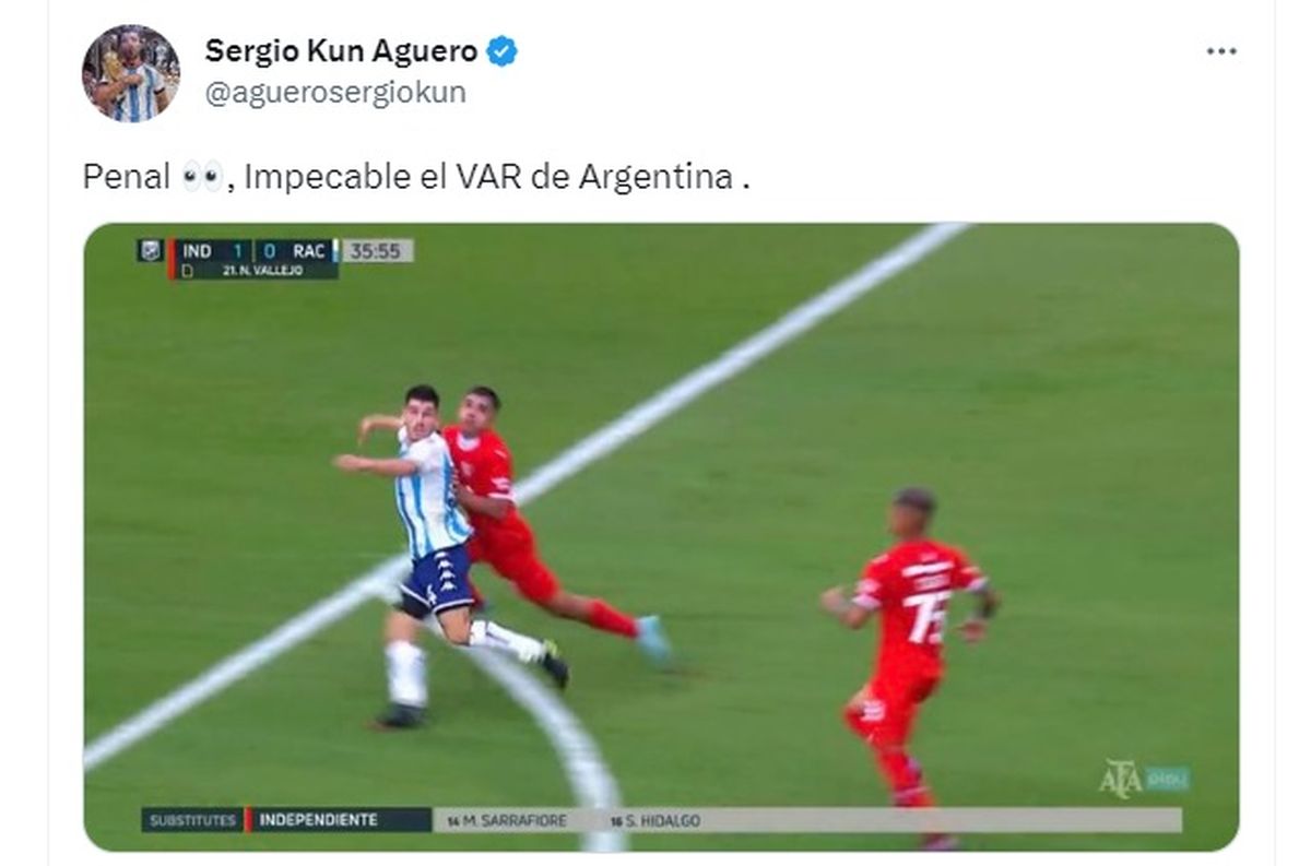 El penal mal sancionado por Yael Falcón Pérez en el clásico de Avellaneda generó repercusión en todos lados. El Kun Agüero, hincha de Independiente, siguiendo el partido desde España criticó la jugada y se burló del VAR en redes sociales.