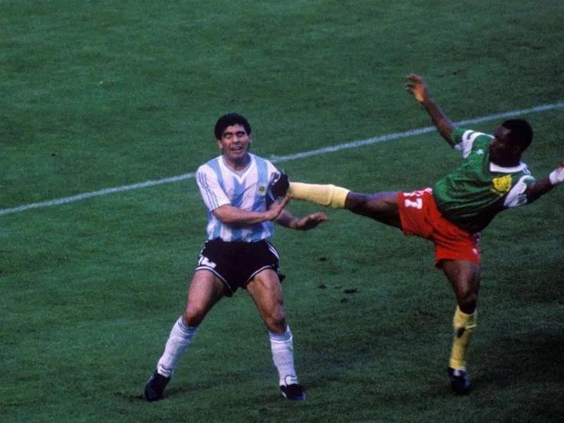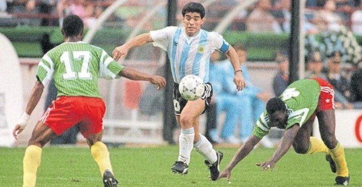 La selección argentina cayó derrotada por 1-0 ante Camerún, con un tanto de Omam Biyik en el minuto 67, donde el balón se le escurre a Nery Pumpido para entrar en el arco y comenzar con el pie izquierdo un mundial que al fin y al cabo, lo tuvo nuevamente a las puertas de la gloria.