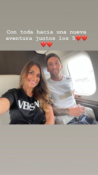 A eso de las 13 de Barcelona -8hs en Argentina-, Leo salió junto con toda su familia de su casa en Castelldefelds rumbo al aeropuerto de Barcelona y minutos después se lo pudo ver bajando de una camioneta con Antonela y sus tres hijos: Thiago, Mateo y Ciro. Un rato más tarde, la esposa del 10 compartió una selfie en su cuenta de Instagram: "Con toda hacia una nueva aventura, juntos los 5", escribió.