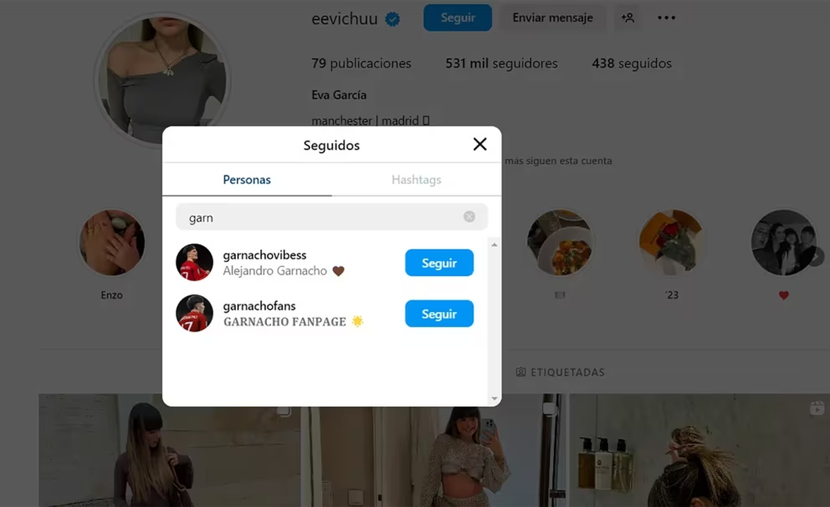 Sin embargo, lo que llamó aún más la atención fue que Alejandro Garnacho ya no figura entre las personas que Eva sigue en Instagram, aunque él sí la continúa siguiendo. Este hecho desató una ola de preguntas entre los seguidores, quienes no dejaron pasar este cambio en el círculo íntimo virtual de la pareja.