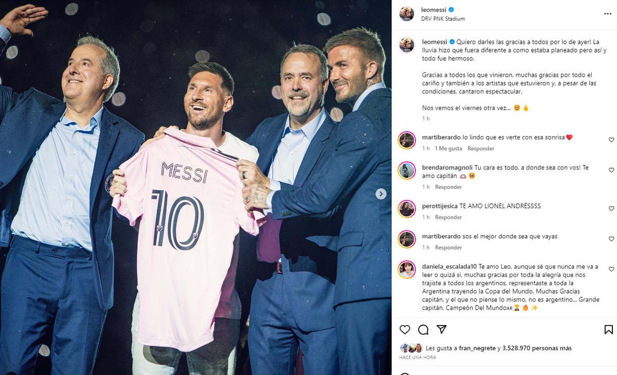 El día después de la presentación oficial de Lionel Messi en Inter Miami, el propio capitán de la Selección Argentina confirmó cuando será su estreno con la camiseta rosa. "Nos vemos el viernes", escribió en su cuenta oficial de Instagram.