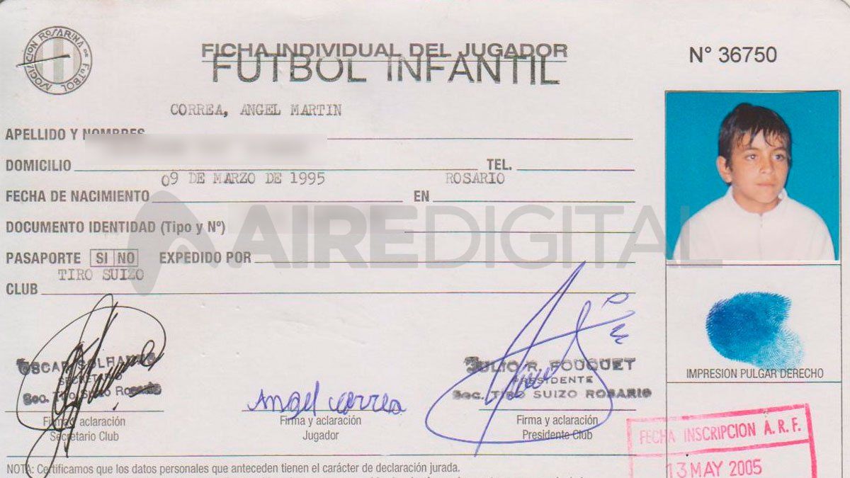 Ángel Correa, campeón de la Copa América 2021, de la Finalissima 2022 y del Mundial de Qatar 2022, dio sus primeros pasos como jugador en las canchas de la Asociación Rosarina de Fútbol. En el fútbol infantil, vistió la camiseta de Tiro Suizo y luego tuvo un breve período en las inferiores de Alianza Sport.