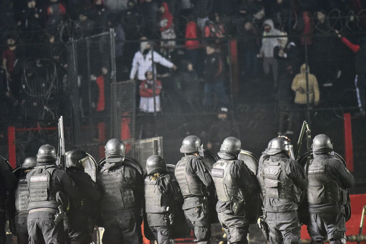 Los problemas continuaron pese a la finalización del duelo. Los jugadores rojinegros no podían salir del estadio producto de los proyectiles que caían sobre la manga. Es por eso que la policía debió desalojar la tribuna mediante la utilización de balazos de goma.
