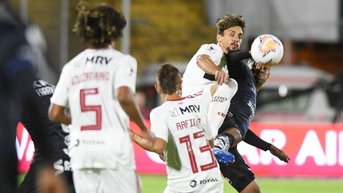 Independiente del Valle, que había desperdiciado la chance de ponerse 2-0 arriba con un disparo del panameño Torres que atrapó Diego Alves, sintió el impacto, desprotegiéndose atrás.