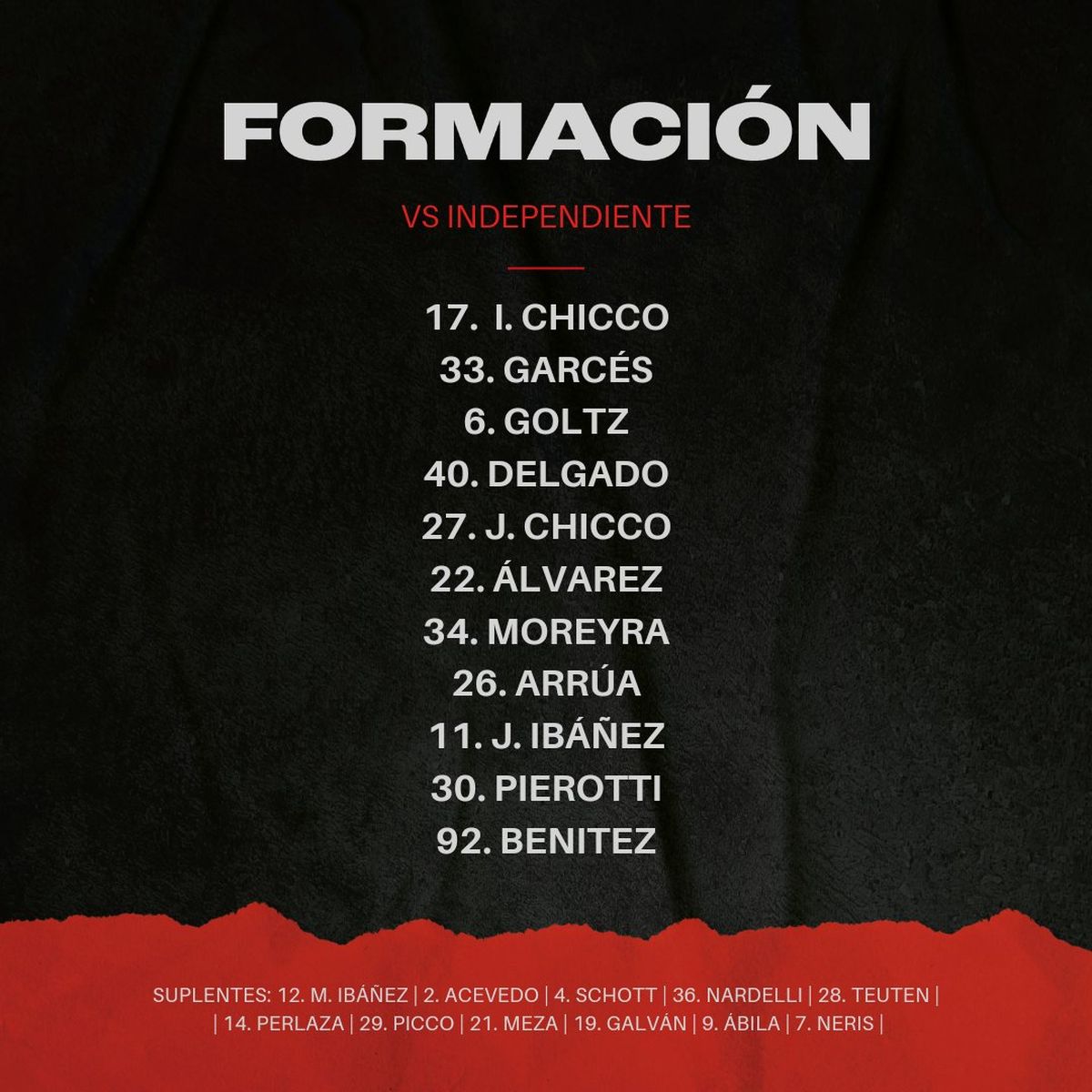 El Rojo confirmó su once titular para afrontar el compromiso ante Colón.