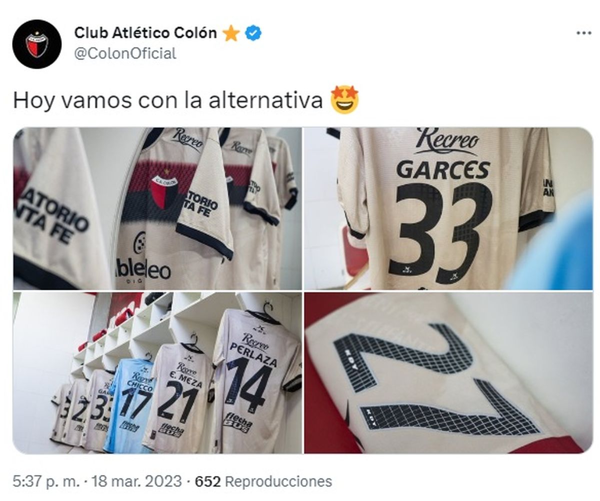 Colón anunció en sus redes sociales que usará la indumentaria alternativa para enfrentar al Rojo por la Liga Profesional.