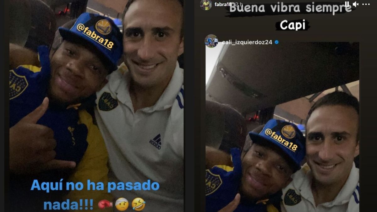 Por lo pronto, en su cuenta de Instagram el "Cali" Izquierdoz dio por cerrado el episodio y Fabra también, porque más tarde publicó la misma foto y escribió "Buena vibra siempre".