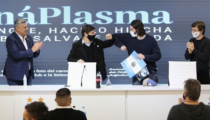“Es una alegría enorme, hace pocos días estuvimos acá acompañando esta iniciativa que tuvo la AFA de asociar la pasión por el fútbol con el acto de entrega y generosidad de donar plasma”, sostuvo Kicillof, acompañado por el presidente de la AFA, Claudio “Chiqui” Tapia, y el ministro de Producción, Ciencia e Innovación Tecnológica, Augusto Costa.