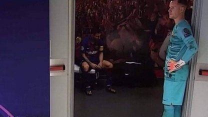 Tras el final del partido, se viralizó una foto del vestuario en la que se lo ve a Lionel Messi cabizbajo, sentado en un banco y con la mirada perdida. Cerca suyo, Ter Stegen, parado junto a la puerta, también parece intentar procesar la derrota.