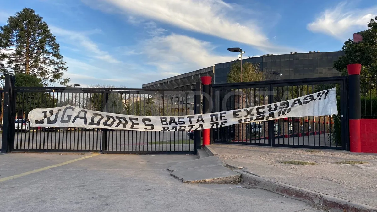En el portón de ingreso a la cancha, sobre un fondo blanco, se puede leer la frase: "Jugadores, basta de excusas. Basta de joda", que responsabiliza por el mal momento del club al plantel.