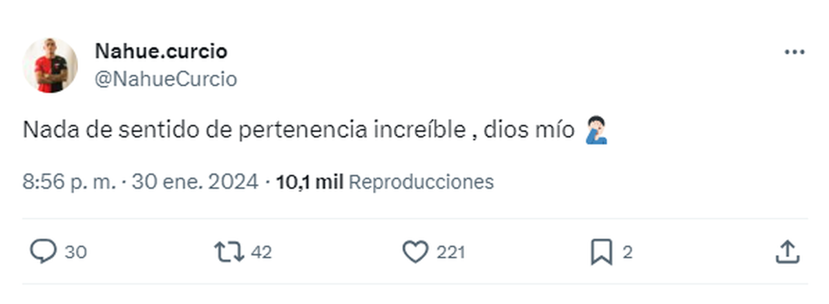 El futbolista de Colón en su cuenta X (ex Twitter) respondió: "Nada de sentido de pertenencia increíble, dios mío". El posteo del juvenil se llenó de mensajes de apoyo entre los que había hinchas, amigos y entrenadores de fútbol.