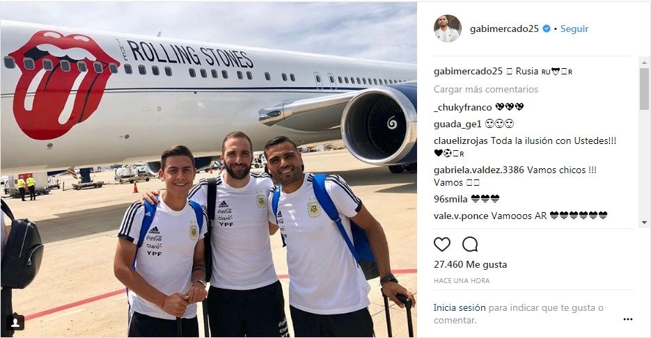 En un avión ploteado con la leyenda “Rolling Stones” y la emblemática lengua afuera que simboliza a la banda, el equipo de Jorge Sampaoli ya encaró su viaje final rumbo a esa gran ilusión llamada Copa del Mundo.