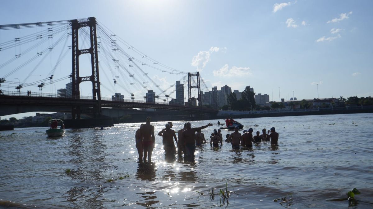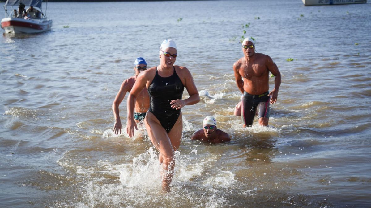 Este viernes por la tarde, los nadadores de la Maratón Santa Fe-Coronda disputaron una carrera de exhibición en la Laguna Setúbal, a la vista de cientos de santafesinos presentes en la costanera.