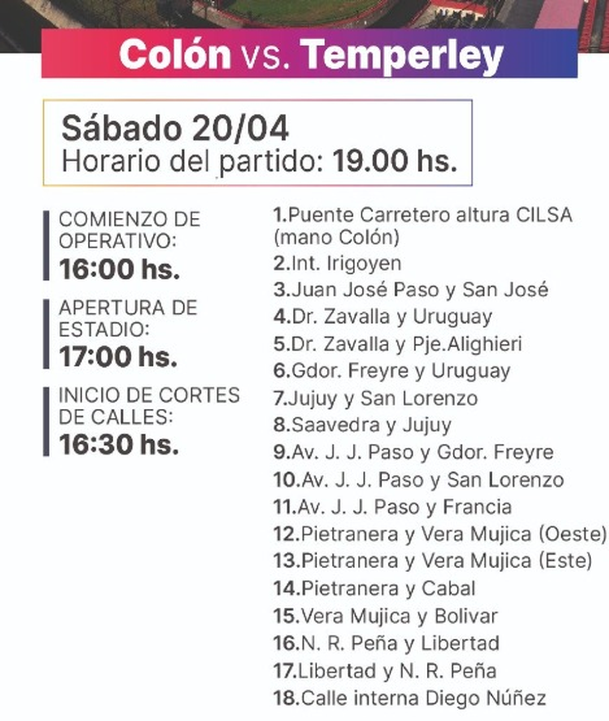 Lo que el hincha de Colón debe saber para ir al partido contra Temperley por la Primera Nacional