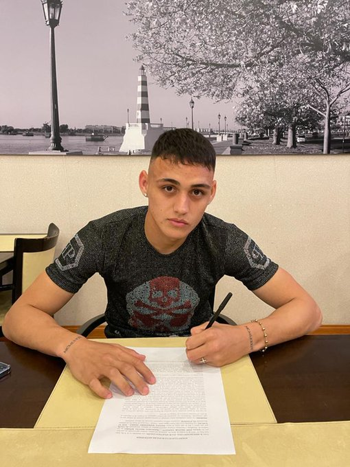 El juvenil sabalero (que firmó su primer contrato como profesional el pasado 8 de julio) jugó solo ante Central Córdoba en Santiago del Estero, el 12 de febrero pasado, sin público en las tribunas. Ese día cumplió 19 años de edad.